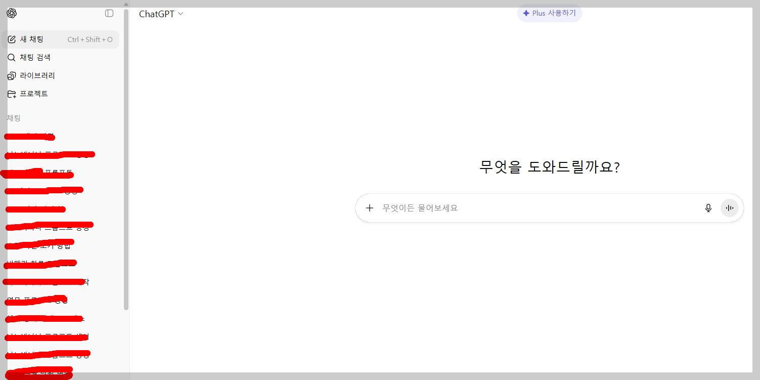 프로젝트는 ChatGPT 내에서 주제별로 독립된 작업 공간을 만드는 기능입니다. 왼쪽 사이드바에 있는 '프로젝트' 폴더를 클릭하고 '새 프로젝트'를 만들면, 투자, 건강, 글쓰기, 여행 등 원하는 주제별로 분리된 대화 공간이 생성됩니다.